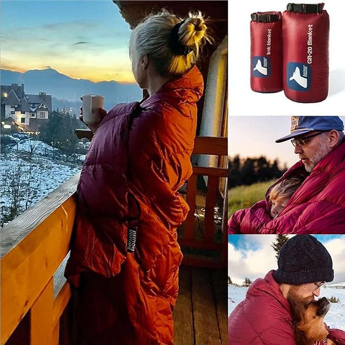 • VERSATILE DESIGN: For backpacking, hiking, a festival, the couch or beach, our puffy down throw clips together for a warm poncho-style stadium blanket. Pairs well with the rest of your thermal equipment for warmth in winter.