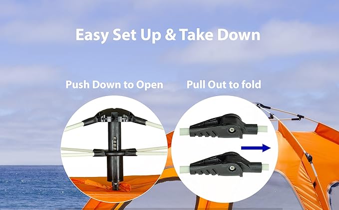 • INSTANT SETUP & PORTABLE DESIGN: Experience effortless deployment! This instant beach tent pops up in seconds and folds down compactly (28"x6"x6") into the included carry bag with ease; designed for single-person setup, making spontaneous beach or park days a breeze