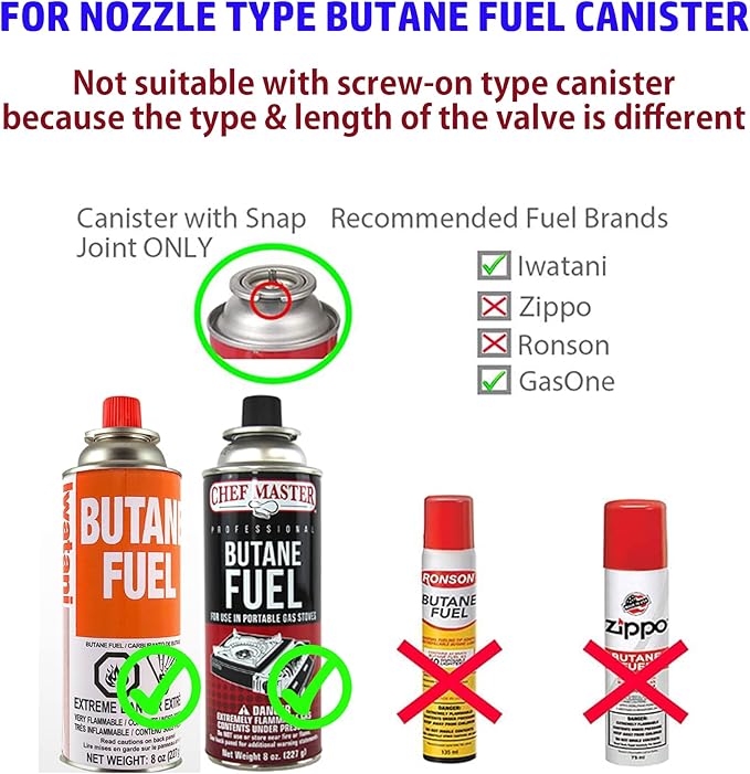 • Easy to connect to a nozzle type butane gas fuel canister.