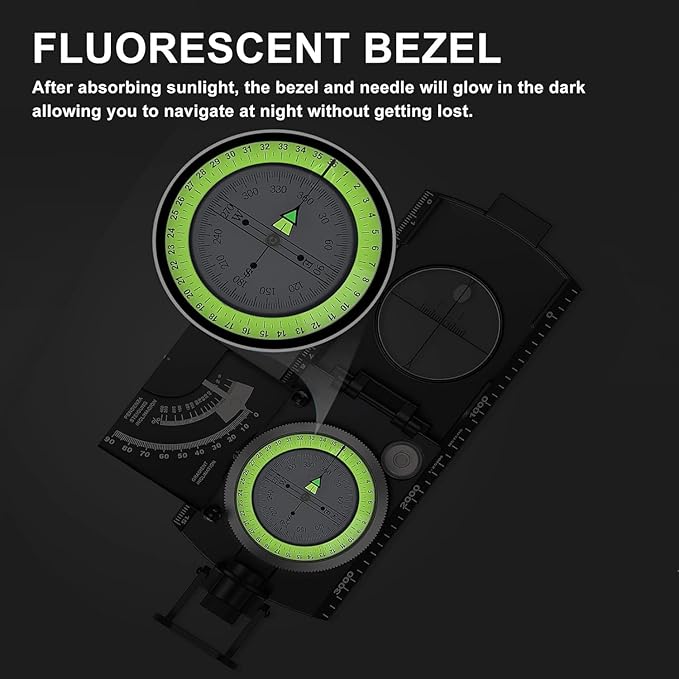 • MULTIFUNCTIONAL TOOL - This compass features a clinometer for measuring height and slopes, a luminous function, and magnifying viewer for easy reading in low-light conditions, making it a useful tool for any outdoor adventure.