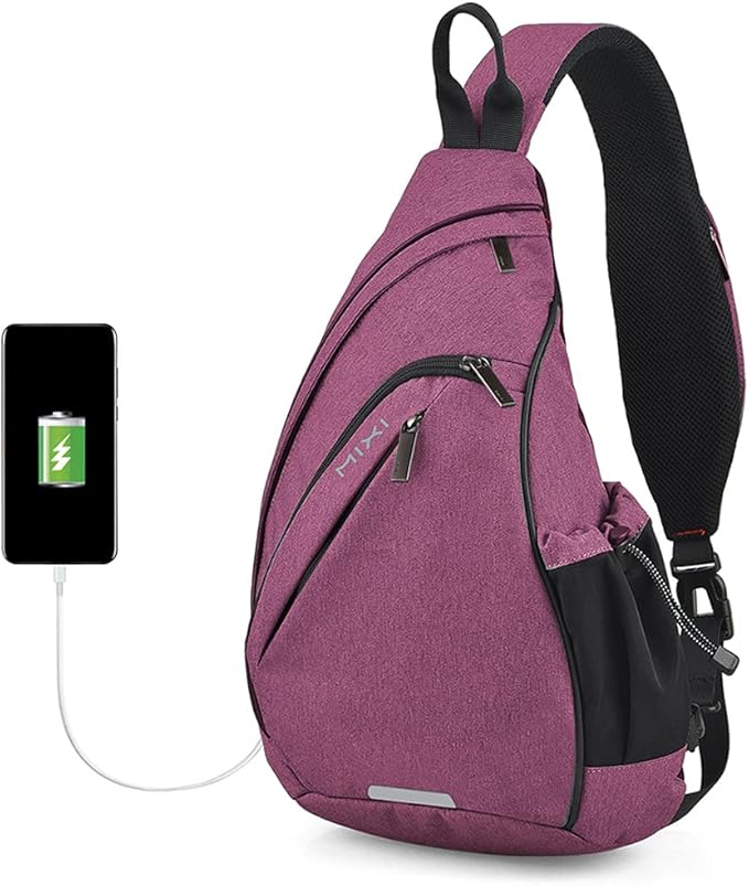 • USB SLING BACKPACK - Casual daypack backpack with USB charger outside and charging cable inside, convenient to charge any devices while walking( NOT include power bank).