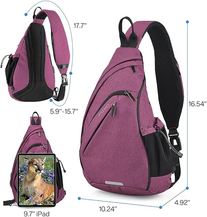 • REVERSIBLE & FLEXIBLE SHOULDER STRAP - Ideal sling bag backpack for BOTH lefties and righties, easy to adjust the length from 23.6'' to max 33.4'' to meet your requirement. Can be worn as chest, shoulder & crossbody sling bag.
