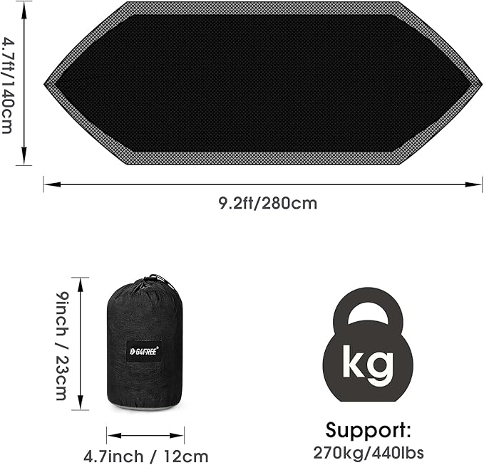 • Durable and sturdy: camping hammock for 2 person, made of 210T nylon spun material(the same as parachute) and triple-stitching polyester gauze net, tear resistant, soft and comfortable to your skin.