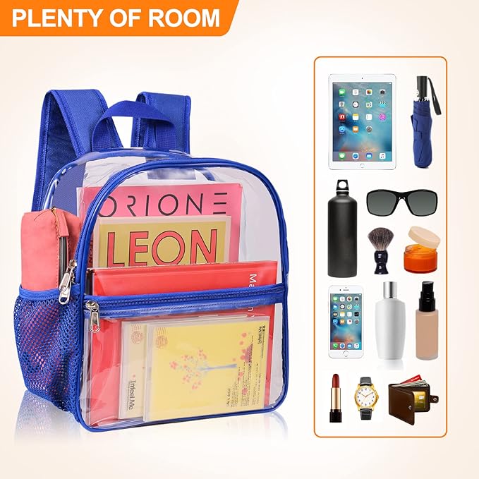 • 【Time-saving and Convenient】The clear backpack allows complete visibility all around.Pass through security with the see-through backpack to avoid being turned away at security checkpoints, and it's convenient to double-check that you have everything you need before leaving.