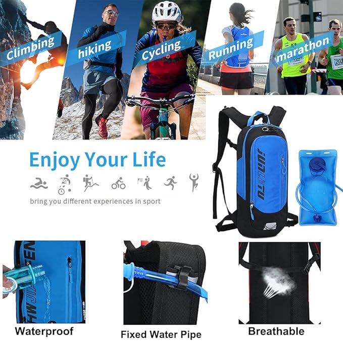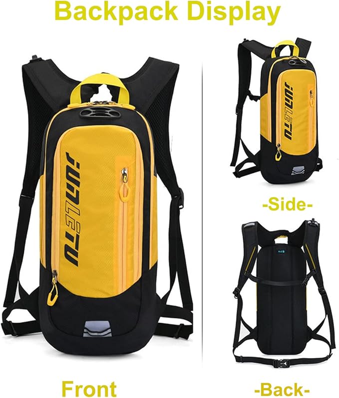 • An Ideal Bike Hydration Pack: Hydration Pack For Outdoor Activities, has light reflection strips, emergency whistle and anti-theft zipper which will reduce your unnecessary worries during the trip. Can be used a hydration backpack, suitable for 2 liters water bladder, special hole designed for water bladder. Ultralight and Breathable design, ergonomic design on the back for maximum breathability and comfort that the items in the bag will not collide directly with the back when walking.
