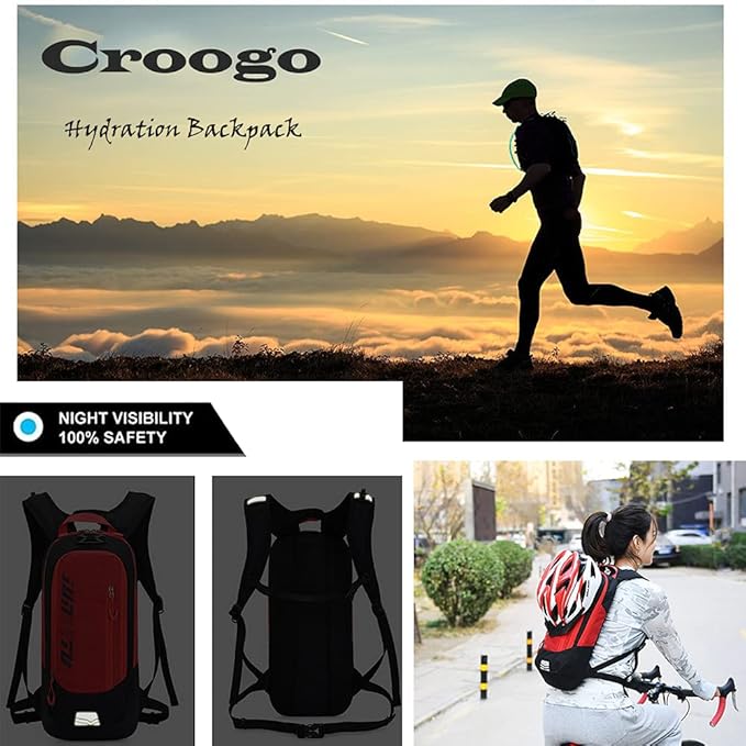 Croogo Hydration Packs,Hydration Backpack with 2L Hydration Bladder,Bicycle Daypack Waterproof Breathable Bag for Climbing