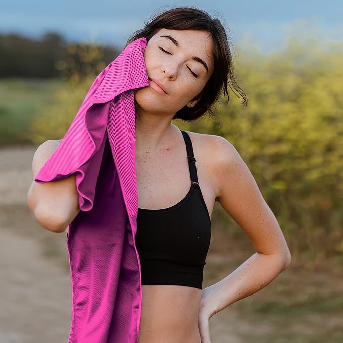 • PREMIUM COOLING TOWEL – Woven with a premium-grade microfiber these cooling towels will have you prepared for all activities under the sun, including sports, fitness, and hiking. Simply dip in water to provide 30-60 minutes of instant cooling relief.