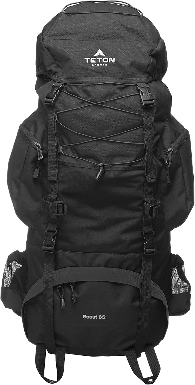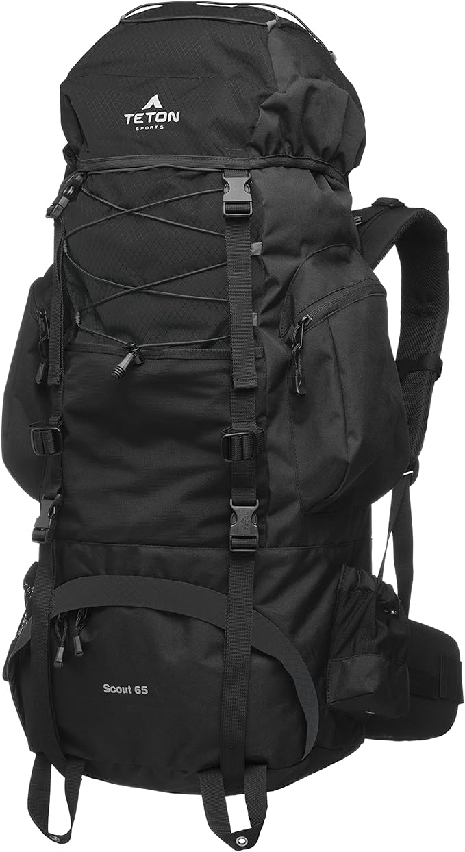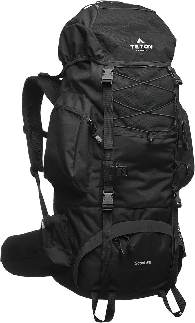 TETON 65L Scout Internal Frame Backpack for Hiking, Camping, Backpacking, Rain Cover Included