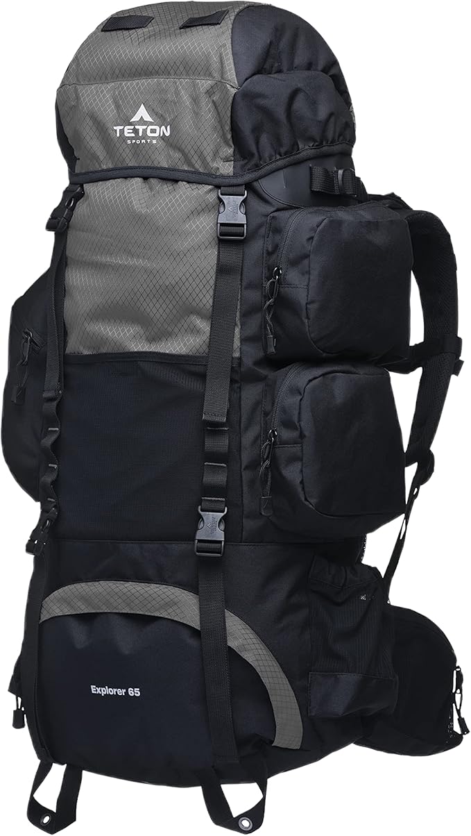 TETON Sports 65L Explorer Internal Frame Backpack for Hiking, Camping, Backpacking, Rain Cover Included, Graphite