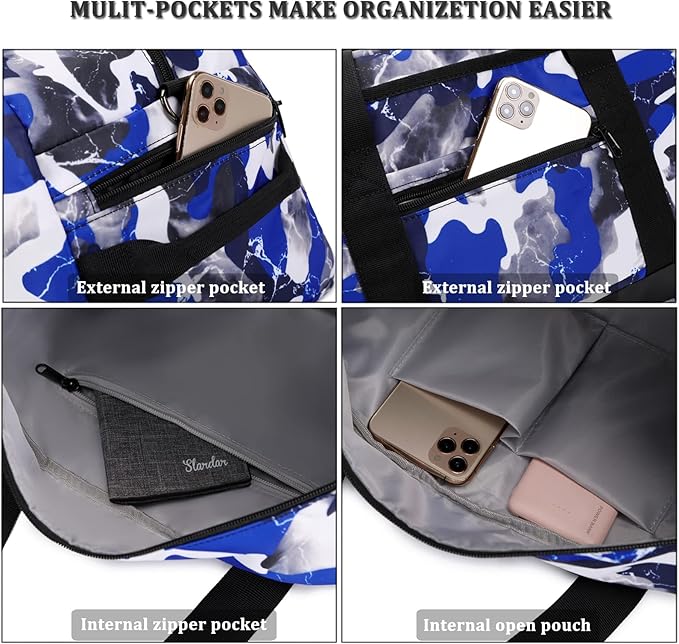 • 【SHOE COMPARTMENT & WET POCKET】: The shoe compartment is made from easy to clean polyester fabric, designed at the side of the gym duffle bag to separate shoes from other stuffs. The waterproof exterior zippered compartment is made from high density material can store wet items, like swimsuit, wipe sweat towels.
