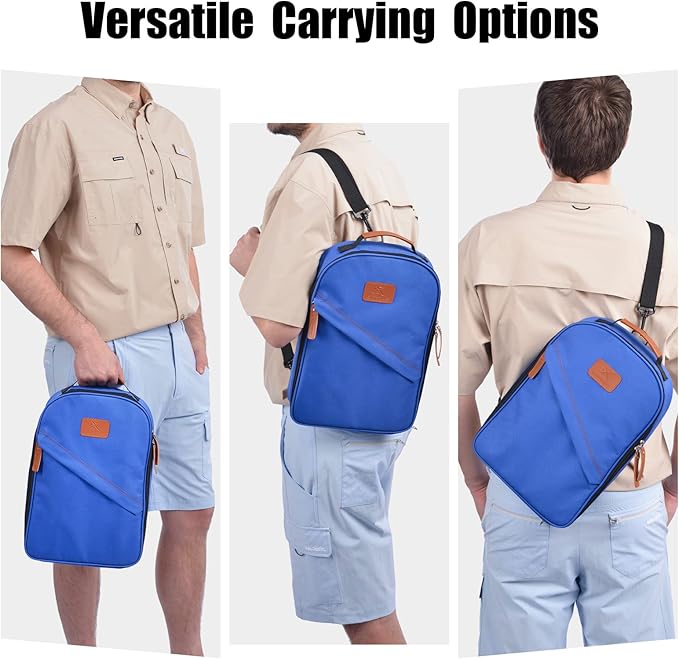 • Lightweight and Portable - This portable camping kitchen utensil set is compact, lightweight, and easy-to-carry. The camping backpack weighs under 4 lbs. Ideal for campers on the move, this backpack has 3 carrying options with a reinforced leather stitched carrying handle for hanging and holding, plus an adjustable shoulder strap to wear on your shoulder or as a cross-body bag. The camping cooking utensil backpack also has dual metal zippers with leather pull-tabs for easy opening and closing.