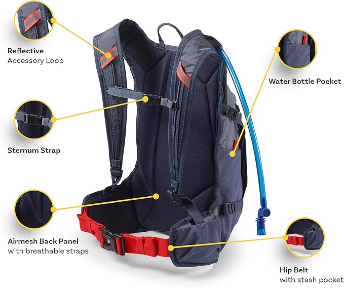 • 16L HYDRATION BACKPACK: Hydration water backpack is the perfect companion for your outdoor adventures; Backpack capacity: 16L; Hydration Bladder Reservoir Capacity: 2L