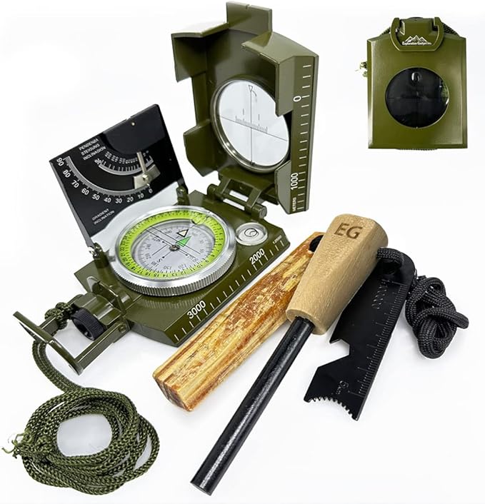 Military Compass with Fatwood Fire Starter for Backpacking and Survival