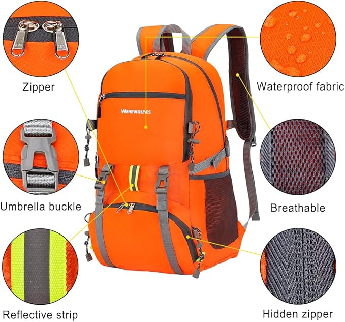 WEREWOLVES 20/35L Lightweight Hiking Backpack, Ultralight Water Resistant Packable Daypack for Women Men