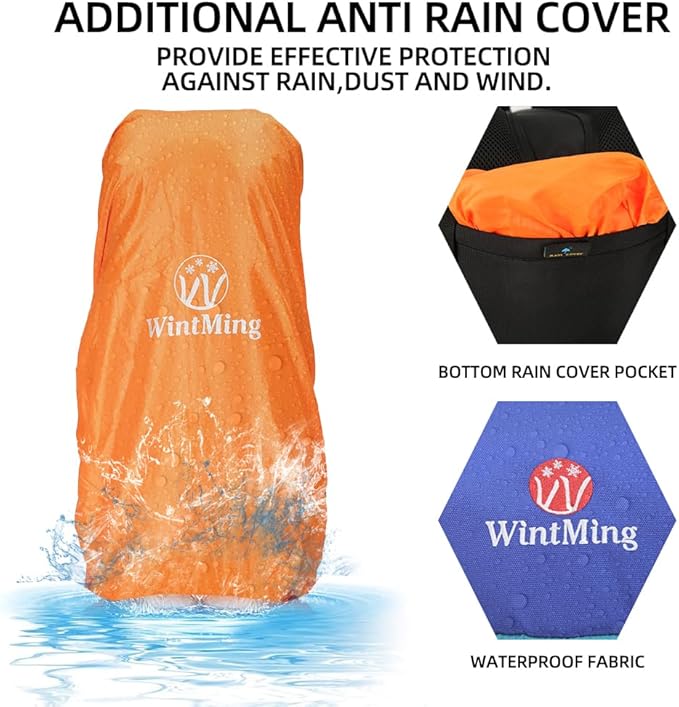• Waterproof & Stable: Camping backpack is made of high-density polyester material, which tear-resistant, water-resistant and anti-abrasion, this men hiking backpack equipped with a rain cove on the bottom pocket, no fear of heavy rain, keep everything dry.