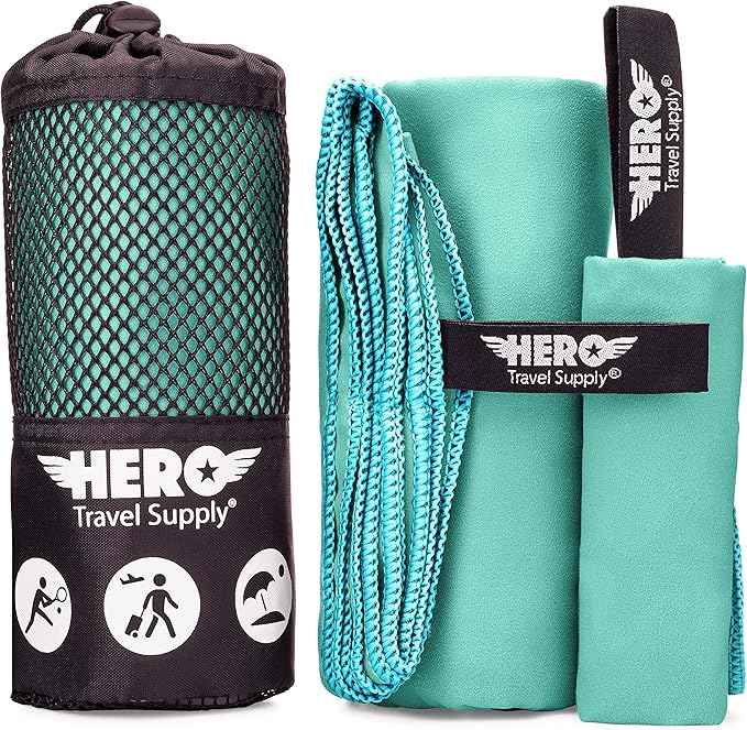 Hero Microfiber Towel for Travel, Camping, Beach, Gym – 24” X 48” (Includes Bonus Washcloth)