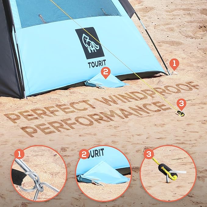 TOURIT Beach Tent 3 Person Instant Sun Shelter with UV Protection for Outdoor Family Beach, Hiking, Fishing