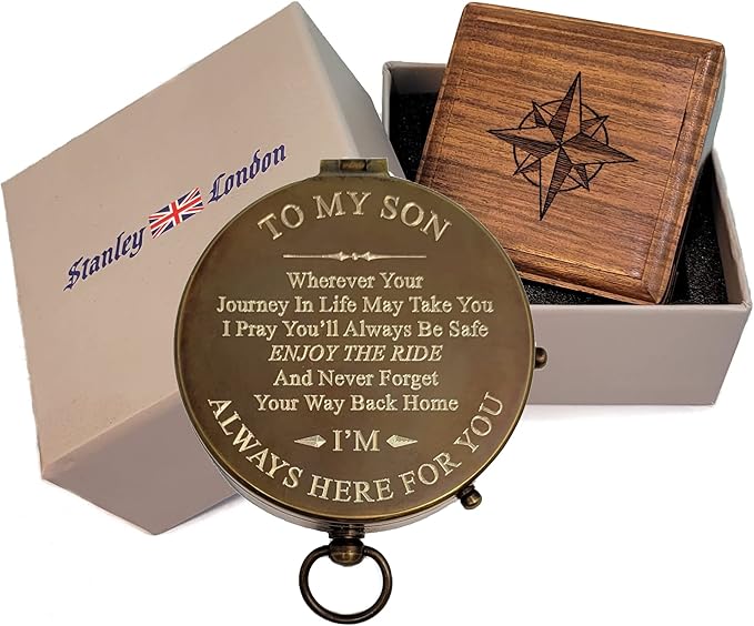 Stanley London Engraved Compass Personalized | Brass Pocket Compass Gifts for Men, Him, Son, Husband, Grandson, Boys | Engravable Antique Gift Compasses for Graduation, Baptism, Confirmation