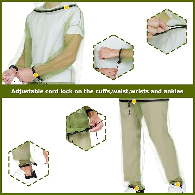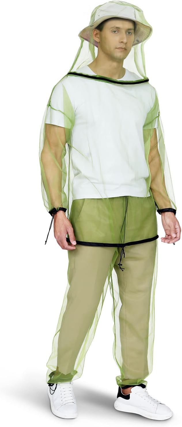 • TRAVEL COMPANION - This mosquito suit is the perfect travel companion. The included carrying pouch ensures easy storage and transport wherever you go. Don't let bugs ruin your trip - pack this mosquito suit set and enjoy your travels with peace of mind.