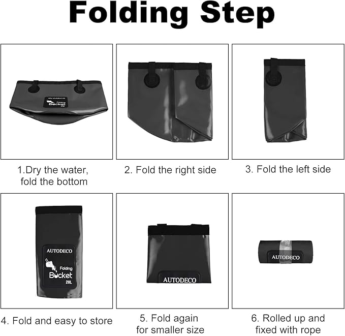 • Multi-purpose Fold Bucket: This AUTODECO Collapsible bucket is ideal for camping, fishing, traveling, boating, hiking, gardening, picnic, outdoor activities, daily use and car washing. It can be used as fish bucket, ice bucket, fruits and veggies basket, travel basin, coaches bucket for baseball, etc