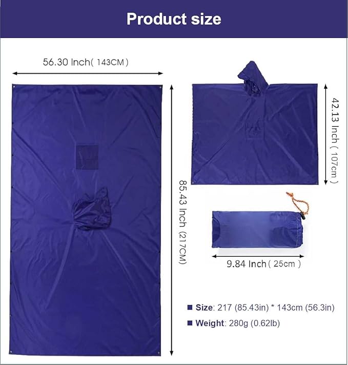 • 【The best choice for outdoor activities】,Portable Hooded Jacket, men's and women's raincoat, one piece for outdoor activities, scientific extended version design, free conversion of dining mat and canopy, rain proof and sun shading, easy to deal with all kinds of rainy weather conditions, experience every special outdoor trip with you, and enjoy the happy fashion of outdoor with you.