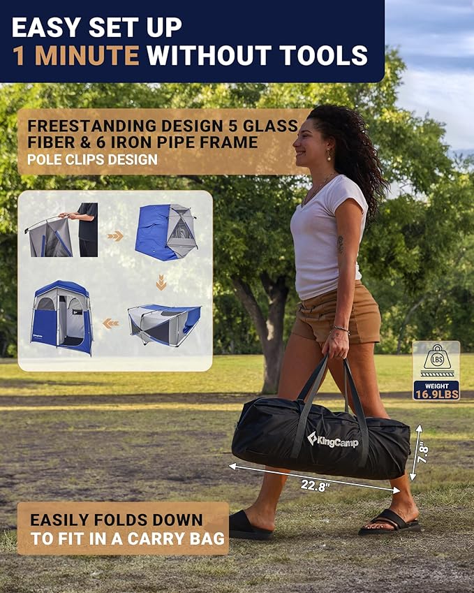 KingCamp Camping Shower Tent, Portable Outdoor Privacy Toilet & Changing Tent Windproof & Waterproof Easy Setup 1 or 2 Room Shelter with Shower Bag for Camping Hiking Beach