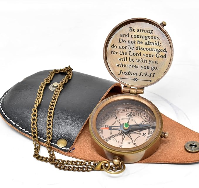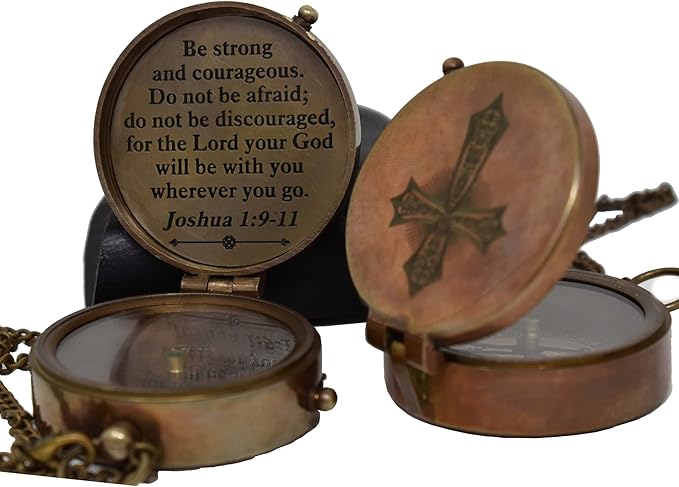 • The scripture Joshua 1:9 is engraved inner lid of the compass and GOD Cross engraved on the top side of the compass