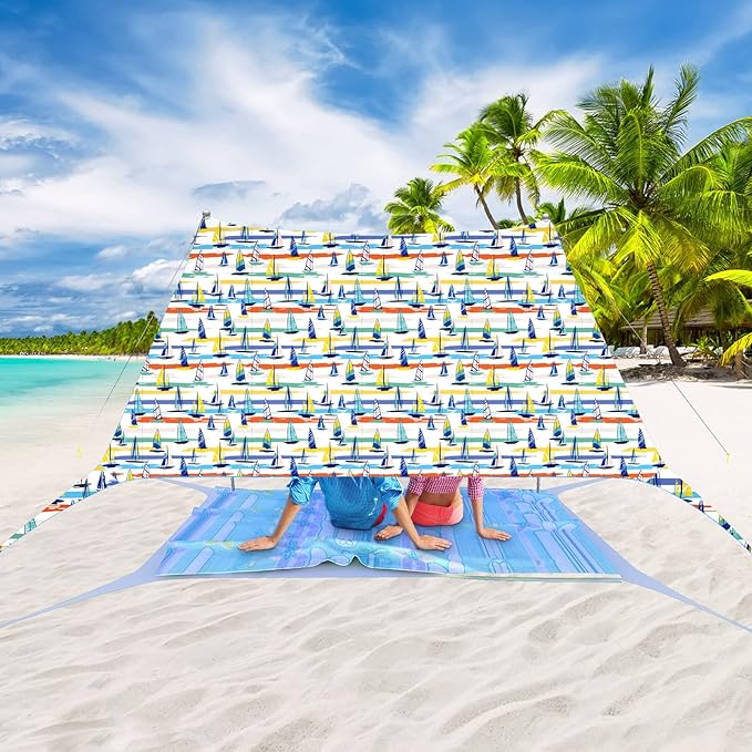 • Large Family Sun Shelter - Zeepair beach tent sun shade canopy‘s four 6.6FT tall aluminum poles keep entire canopy area stays at full height that increasing the shaded area by 50%.10x10FT is enough for 6-8 people. 7x7FT is enough for 3-6 people. It holds up well in the wind because of the extra big sand anchors and high quality rust-proof aluminum poles.Providing enough space for couples, families and friends' party. FOUR CONVENIENT FAMILY SIZES. Choose the ideal that works for your family needs