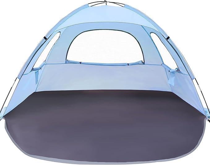 • Omni-directional Zipper for Added Privacy: Our beach tent uses omni-directional zipper design. It allows you to open and close the floor mat from the inside, outside, and as well as from both sides. It’s very convenient to get in and out. The extended front floor provides extra room for more activities, which can be zipped up when you need extra private space, or are away from the tent.