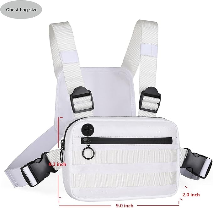 • 【Appropriate Size】The chest bag size is 9.0*6.3*2.0 inches, it can accommodate items that need to be carried with you for outdoor sports, such as mobile phones, keys, watches, wallets, skipping ropes, snacks, etc. The appropriate size is freeing your hands and will not increase the burden during exercise