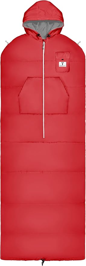 Thermotuff Wearable Sleeping Bag with Dual Hoodie, Zippered Arm Holes, Pockets & Adjustable Drawstring - Ideal for Camping, Cold Weather Hiking, and Stadium Sak Blanket