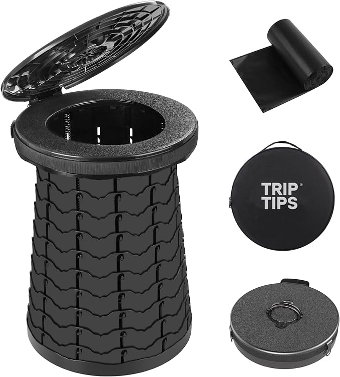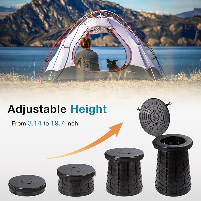 • 【HEIGHT ADJUSTABLE】 Are you looking for a portable toilet that is height adjustable and could be folded down to a small size for easy transport? Here it is! TRIPTIPS retractable portable toilet is designed with innovative fish scale structure, by which you could freely adjust any height you want from 3.14 inches to 19.7 inches within 10 steps. Whether elderly or children, men or women, can always find a comfortable height for themself.