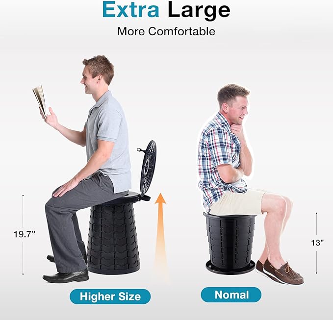• 【EXTRA LARGE】 As we know, the foldable toilets on the market are generally not high enough for adult men. So we increased the height of this toilet to 19.7inch, which is very suitable even for man use. In addition to this, We widened the seat cover, making you feel more comfortable when sitting on it.