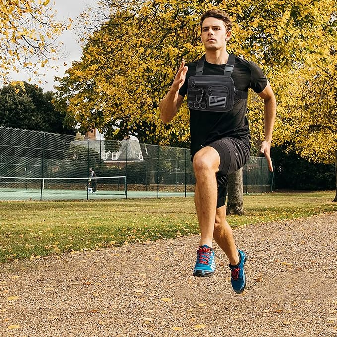 Tactical Sports EDC Chest Pack, Versatile Utility Chest Rig Bag For Men. Water Resistant Chest Bag Vest & Pouch For Workouts, Running & Cycling