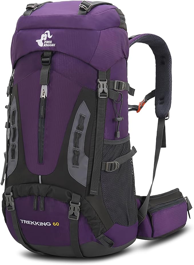 Bseash 60L Hiking Camping Backpack with Rain Cover, Waterproof Large Capacity Outdoor Sport Travel Daypack Climbing Touring (Purple)