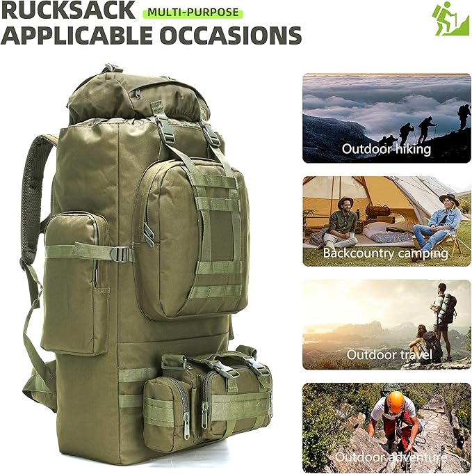 • 【Waterproof and Breathable Fabric】: The 100l tactical military backpack is made of 902D Oxford cloth fabric and waterproof material. The military backpacking bag thick density Tear Resisten Oxford cloth fabric is waterproof and wear-resistant, and the texture is tough and odorless. For traditional hiking backpacks, belts and high-quality zippers are better with durability and scratch resistance.