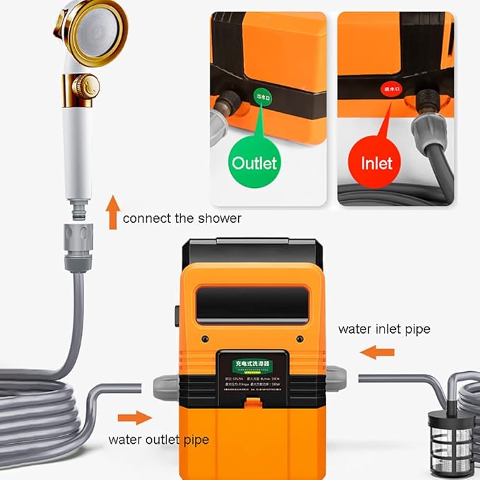 • Wide range of uses: Camping high-pressure water pump comes with 10M super long water pipe and car wash water gun, in addition to being used for showering with a shower, it can also be used for irrigation, car washing, watering flowers, etc. It is very suitable for home cleaning, outdoor leisure, camping trips and garden use .