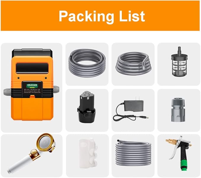 • Complete accessories: The multifunctional high-pressure water pump has complete accessories, including shower self-priming pump, 4M water outlet pipe, 2M water inlet pipe, water inlet filter, battery, charger, quick connector, shower head, shower suction cup hook, 10m water pipe, car wash water gun . Can meet your different water needs!