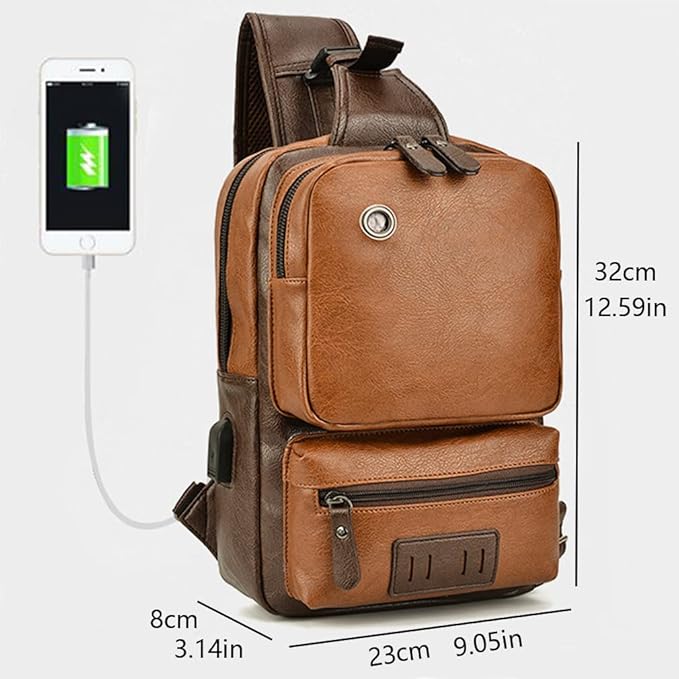 • 【Versatile & Spacious: 】: Size:23cm*8cm *32cm (9.05"*3.14"*12.59") ,Shoulder Strap: 120cm(47.24inch ) approx,Weight: 600g(21.16oz) approx, travel accessories, clothes, stationery, notebook.1 main zippered roomy compartment with 2 inner pockets.with external USB charging port (power bank not included),2x Front zippers Pocket , the bag can be used as a sling one shoulder bag, also as a backpack. perfect Gift for Christmas, New Year, Thanks Giving Day, Groomsmen, Birthdays, Father's Day.