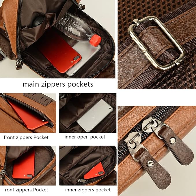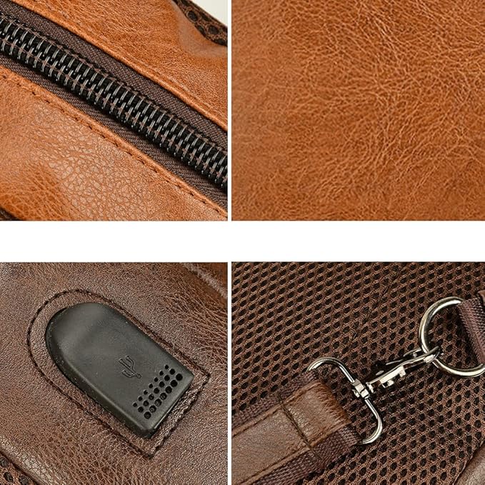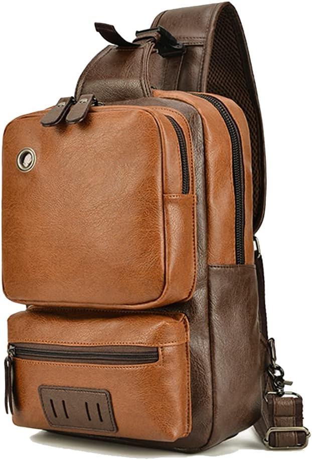 KPYWZER Leather Sling Bag Hiking Daypack for Men Women Outdoor Travel Camping Fishing Crossbody Shoulder Chest Pack Backpack Daypack Brown