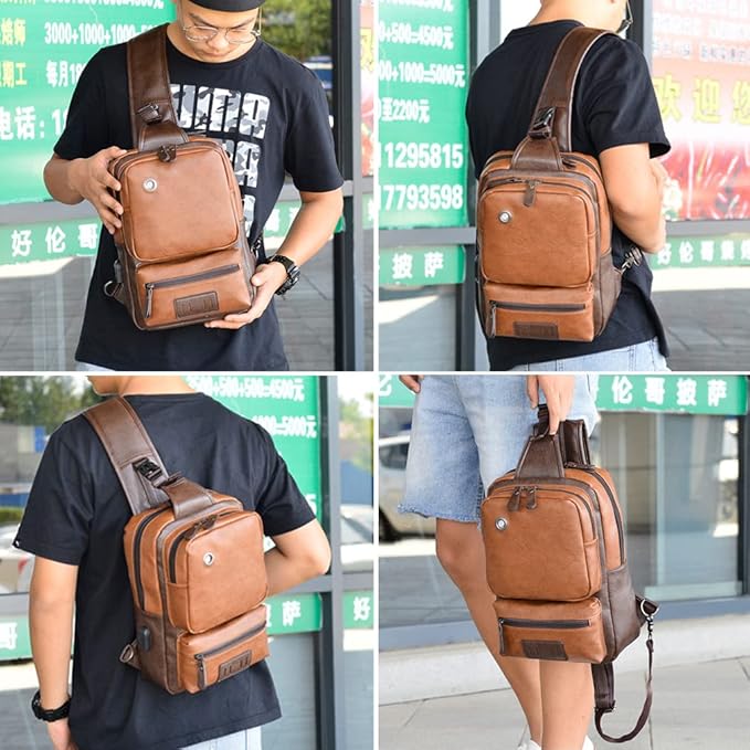 • 【Designed for comfort】 : It can be used as a Chest Pack, Business Leather Bag, Casual Sports Sling Bag, Single Shoulder Bags, Messenger Bag, Travel bag, Leather Golf Bag, Handbags etc.Adjustable cross-body shoulder strap with release clip.Satchel strap is adjustable and can be left or right shoulder, fit both regular and plus-size person. This stylish sling bag can be used as a chest bag and shoulder bag.