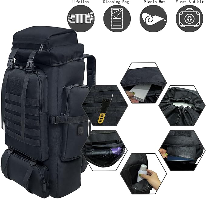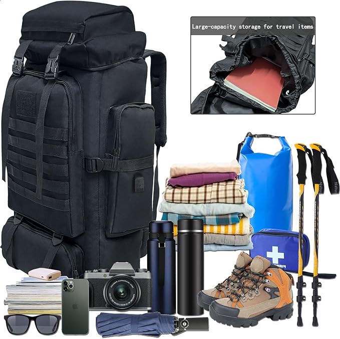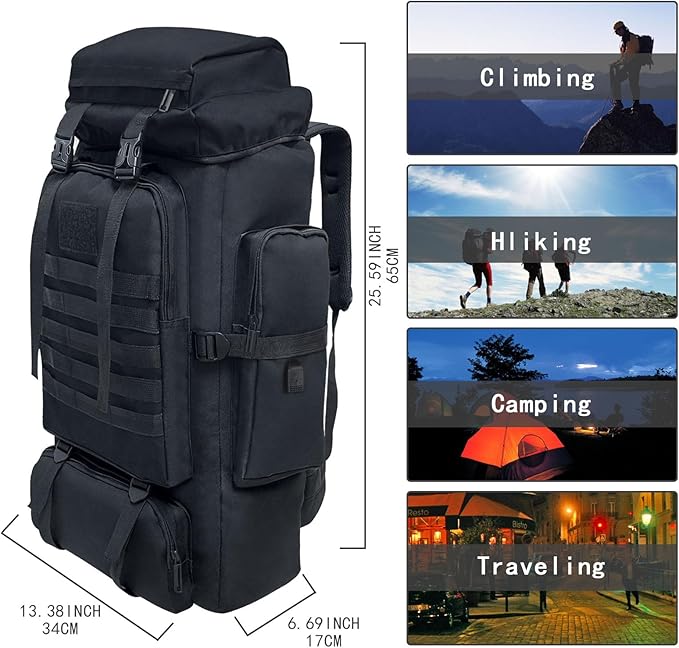 80L 100 Liters Camping Hiking Military Tactical Backpack,Water Resistant Large Travel Daypacks Outdoor MOLLE Rucksack