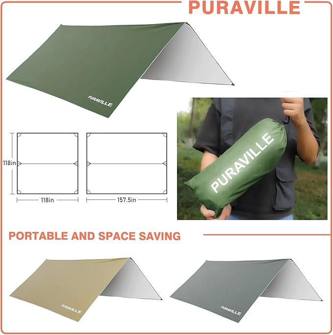 • A PERFECT SHELTER FOR OUTDOOR ADVENTURE: Are you struggling to pick the best backpacking tarp from a dazzling numbers of choices? Let Puraville be your first choice! Our camping tarp will provide you a cozy shelter in the wildness within minutes, protect you from the sun, snow, rain, or wind when enjoying the beauty of nature.
