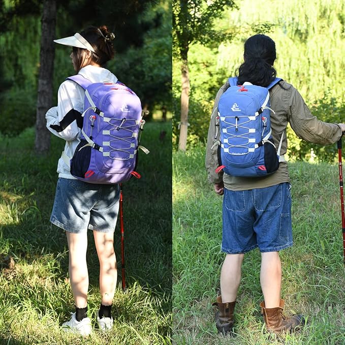 • Multi Compartment :Generous main compartments and multiple pockets allow you to keep all of your gear secure and organized.The spacious main compartment holds sleepingbag, clothes, or other everyday essentials. With one Interior Pouch for water bladder.It also has a front pocket with a zipper. The elastic cord is designed to store items that need to be easily accessible. In addition, it has two side pockets for your water bottle or umbrella.