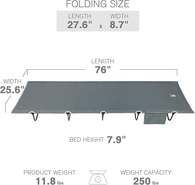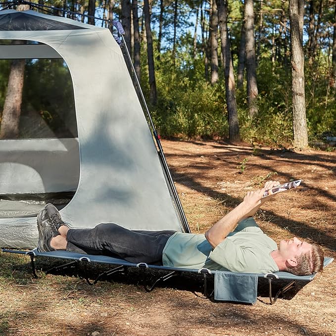 • STORAGE: The camping sleeping cot has side pocket to put the cell and night time necessities, makes your camping experience so much more enjoyable