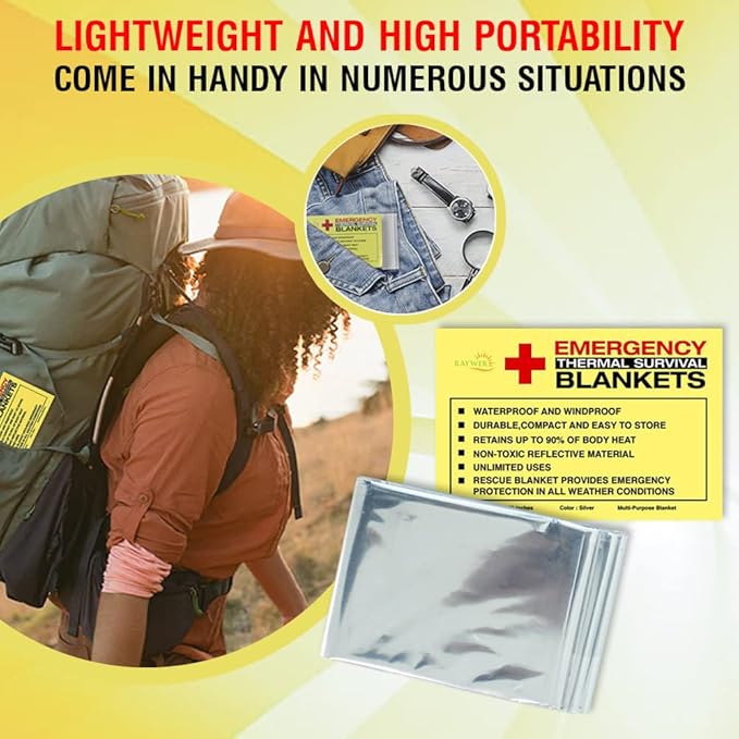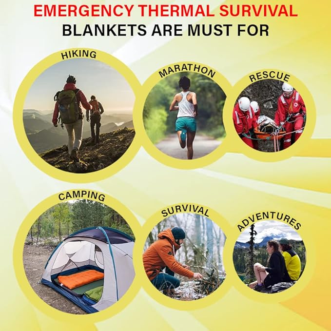 • THERMAL EMERGENCY BLANKETS: If you have a love for adventure and are always ready to pack your go-bags, these emergency thermal blankets for survival are a must for you. Be it hiking, camping, marathons, survival, or any outdoor adventure, you can count on these blankets for maximal safety assurance.
