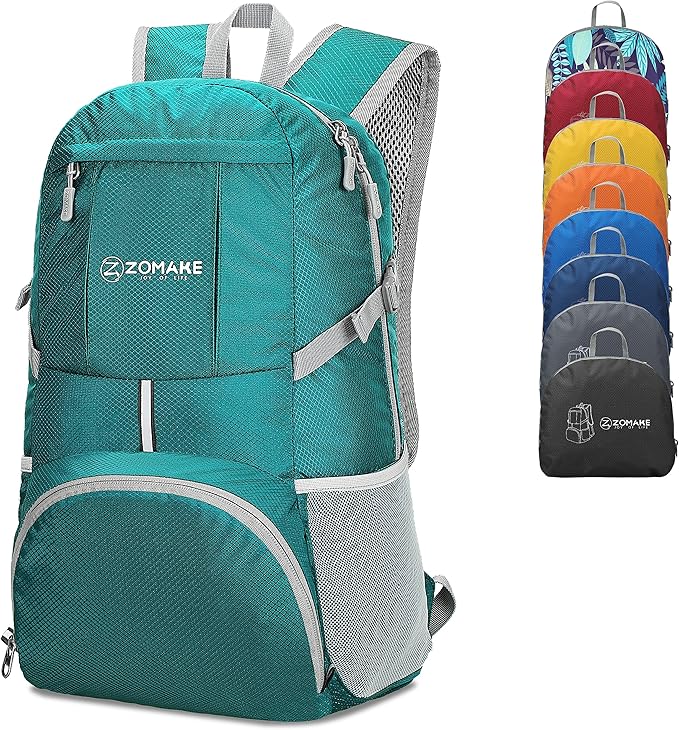 ZOMAKE Lightweight Packable Backpack 35L - Light Foldable Backpacks Water Resistant Collapsible Hiking Backpack - Compact Folding Day Pack for Travel Camping(Lake Green)