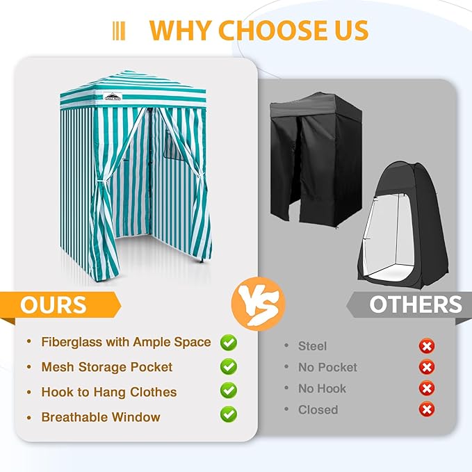 • INSTANT PRIVACY CHANGING ROOM: 4x4 changing tent for one or two people. Perfect as a changing room or sun cabana for outdoor activities: fashion show, photoshoot, camping, backyards, pool party or a showering tent, portable toilet shelter .