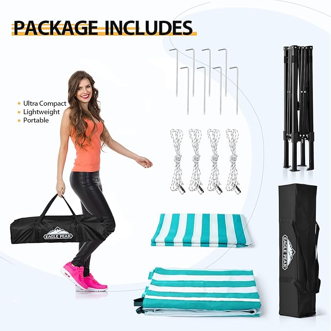 • EASY TO SETUP AND PUT AWAY: The EAGLE PEAK pop up system is more flexible and makes setup easy. The frame glides when opening and closing, enabling one person to easily open and close the canopy .