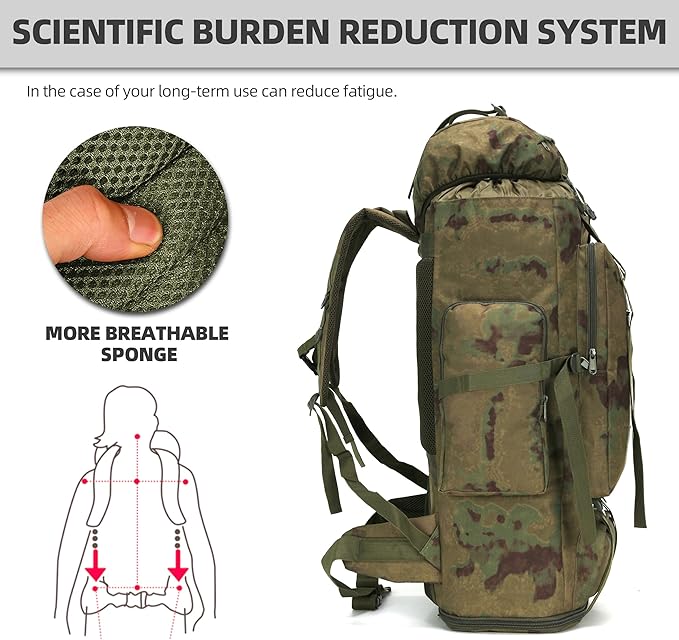 • 【Comfortable Backpack】: Military mountaineering backpack features sweat-absorbing and breathable sponge shoulder straps with airflow channels to keep your back cool and dry. This molle mountaineering backpack features 2cm thick cellular foam padding to relieve shoulder pressure.